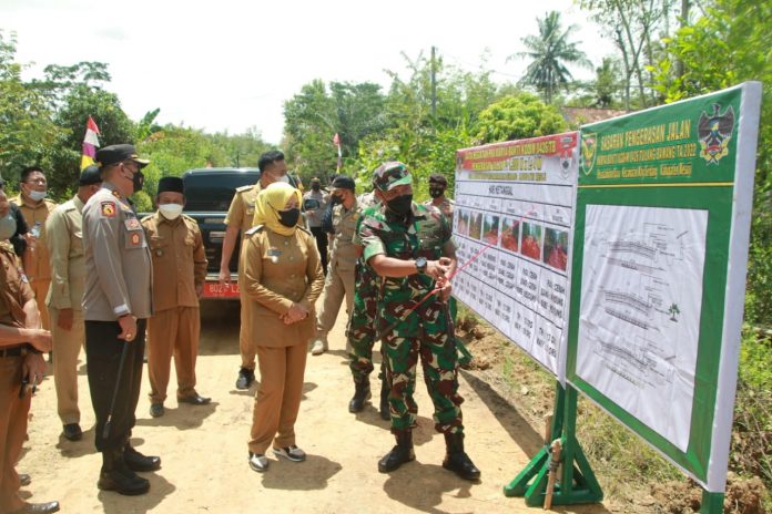 “Dengan besaran kegiatan fisik yaitu pengerasan jalan panjang 1,2 KM lebar 4 M dan 1 unit gorong-gorong Panjang 7 M Lebar 1 M. Sementara itu sasaran kegiatan non fisik berupa penyuluhan kesadaran bela negara dan wawasan kebangsaan, penyuluhan Kesehatan, penyuluhan KB penyuluhan Pertanian dan Perkebunan, penyuluhan tentang kesadaran hukum, Kamtibmas dan senpi ilegal serta melaksanakan kegiatan pelatihan bela negara,” imbuh Dandim.