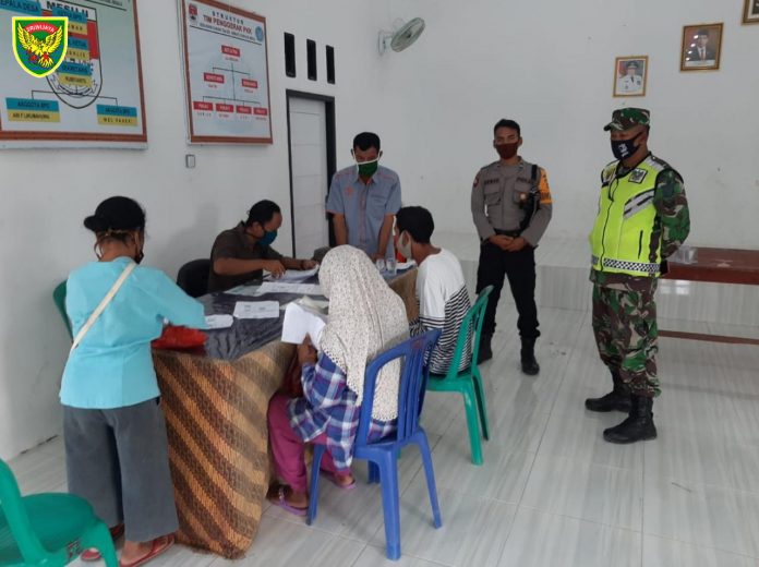 Kawal Pembagian BST Babinsa dan Babinkamtibmas Himbau Warga Wajib Lakukan Protokol Kesehatan