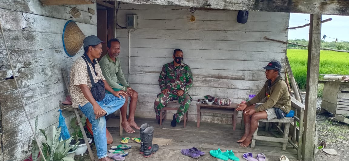 KODIM 0426/TB- MESUJI- Serda Susilo Wahyu, Anggota Koramil 426-01 Mesuji, Kodim 0426 Tulang Bawang, ajak masyarakat untuk sama sama menjaga keamanan desa, Jum’at 26 Februari 2021.