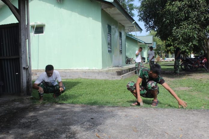 KODIM 0426/TB- TULANG BAWANG- Untuk menciptakan lingkungan dan tempat kerja yang nyaman dan sehat, anggota Kodim 0426 Tulang Bawang melaksanakan pemeliharaan bangunan (Harbang) dan pembersihan lingkungan di seputaran pangkalan, Senin, (14/12/2020).