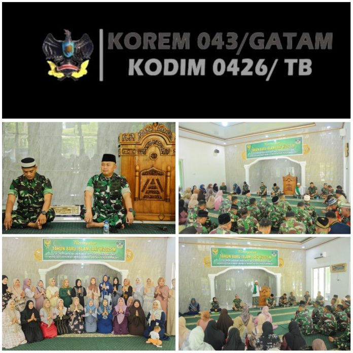 KODIM 0426/TB – – Menggala (Tulang Bawang) — Dalam rangka menyambut Tahun Baru Islam 1 Muharram 1447 H/2025, Komando Distrik Militer (Kodim) 0426 Tulang Bawang menggelar kegiatan doa bersama yang berlangsung khidmat di Masjid Jamiyatul Ummah, Jl. Lintas Timur Sumatera KM 113, Kampung Bujung Tenuk, Kecamatan Menggala, pada Selasa, 15 Juli 2025.
