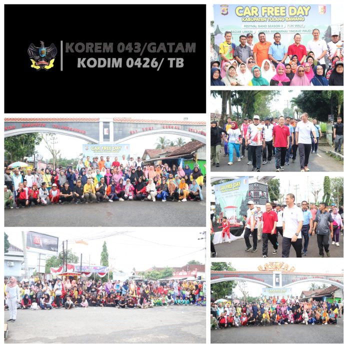 KODIM 0426/TB-Kodim 0426 Tulang Bawang, Ikut memeriahkan launching Car Free Day di Kabupaten Tulang Bawang (Tuba), Minggu 26 Mei 2024.