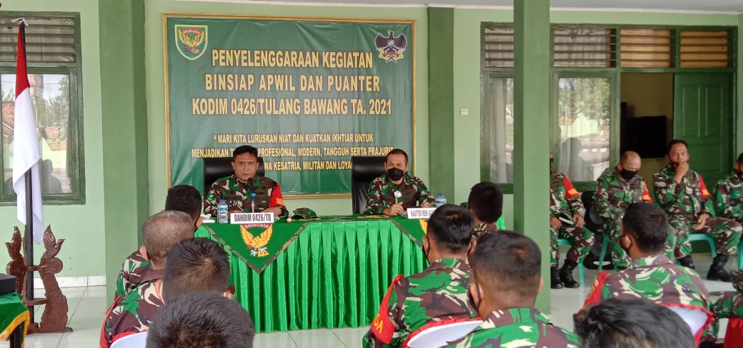 Bertempat di Makodim 0426/TB Jln Lintas Timur Sumatera KM 113 Kampung, Kecamatan Menggala Kabupaten Tulang Bawang Tim penilai Lomba Pembinaan Teritorial (Binter) penyelenggaraan kegiatan Binsiap Apwil dan Puanter Kodim 0426/TB dari Korem 043/Gatam datang melaksanakan penilaian.