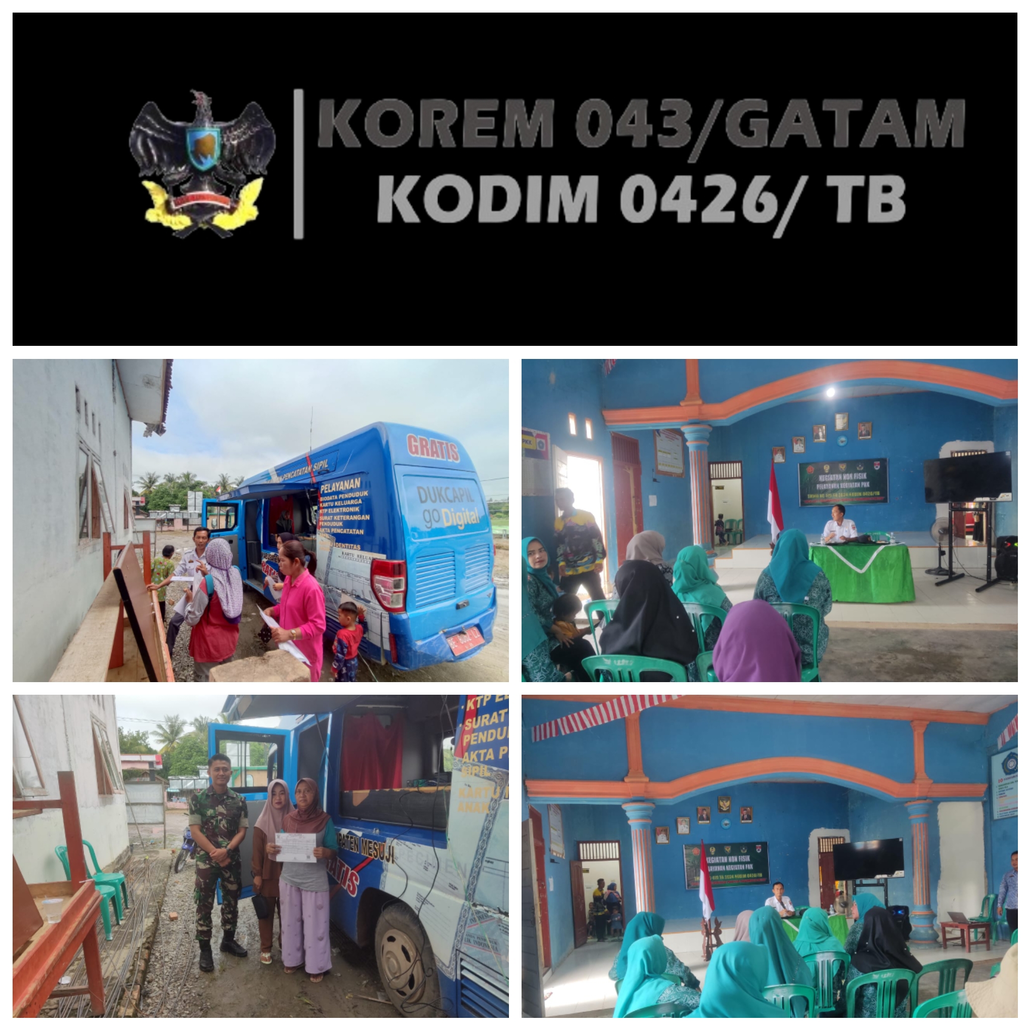 KODIM 0426/TB-Dalam rangkaian kegiatan TNI Manunggal Membangun Desa (TMMD) Ke-119, Kodim 0426/Tulang Bawang bersama Dinas Pencatatan Sipil melakukan langkah nyata untuk membantu masyarakat Desa Sungai Badak, yang menjadi sasaran lokasi TMMD. Kolaborasi ini bertujuan untuk memberikan kemudahan kepada warga dalam mengurus dokumen-dokumen pribadi dan keluarga mereka, Jum’at 08 Maret 2024.