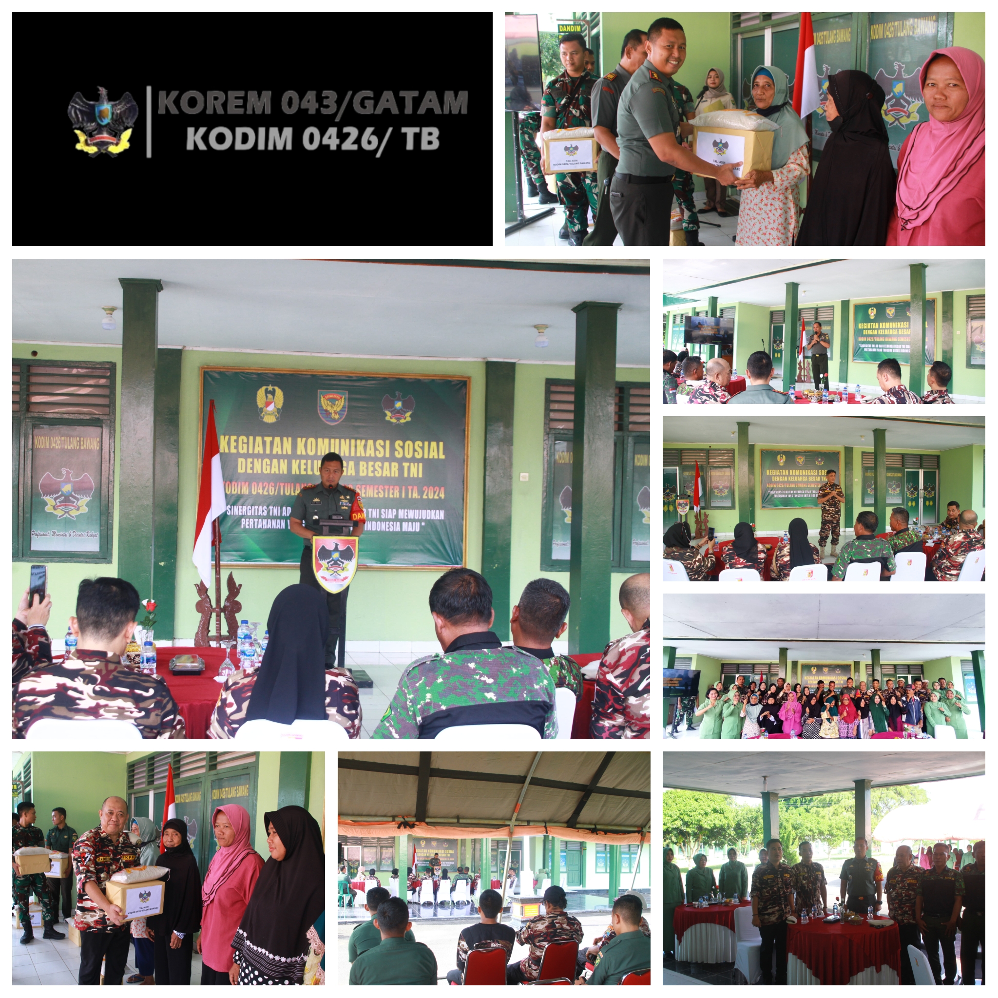 KODIM 0426/TB-Menggala (Tulang Bawang) — Kodim 0426 Tulang Bawang menggelar kegiatan komunikasi sosial (komsos) dengan Keluarga Besar TNI Semester l TA. 2024 di Makodim Jl Lintas Timur Sumatera, KM 113 Kampung Bujung Tenuk, Kecamatan Menggala Kabupaten Tulang Bawang, Jum’at 14 Juni 2024.