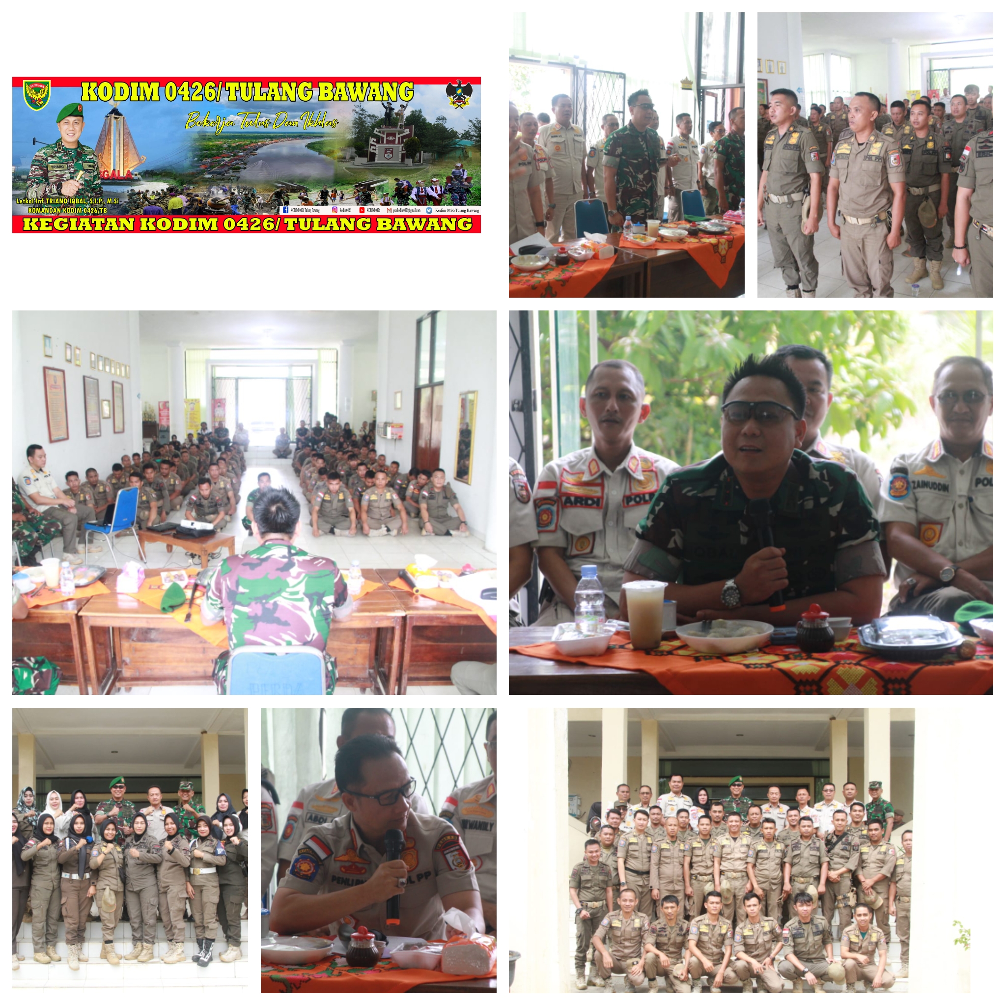 KODIM 0426/TB-Komandan Kodim 0426 Tulang Bawang, Letkol Inf Triano Iqbal, S.I.P., M.S.i, memberikan materi pelatihan dasar kepada anggota Badan Polisi Pamong Praja (Pol PP) dengan fokus pada penguatan wawasan kebangsaan. Pelatihan dilaksanakan di kantor Pol pp yang berlokasi di Jalan Cemara Kelurahan Menggala Selatan, Kecamatan Menggala, Kabupaten Tulang Bawang, Jum’at 01 Desember 2023.