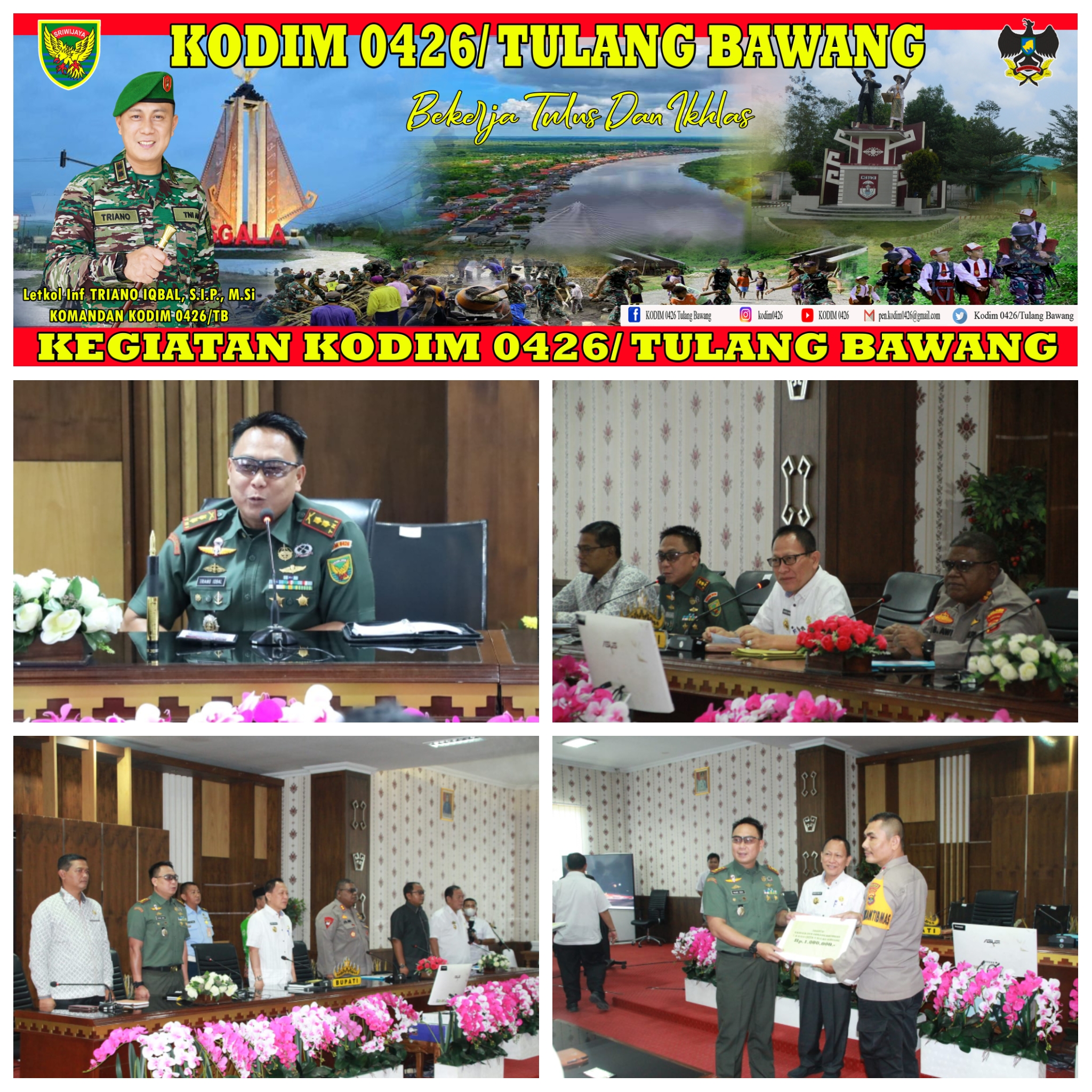 Komandan Kodim 0426 Tulang Bawang Letkol Inf Triano Iqbal, S.I.P., M.Si, bersama Pemkab Tulang Bawang (Tuba) bahas tentang pembatasan hiburan jam malam pada kegiatan pesta atau hajatan di masyarakat, Kamis 13 April 2023.