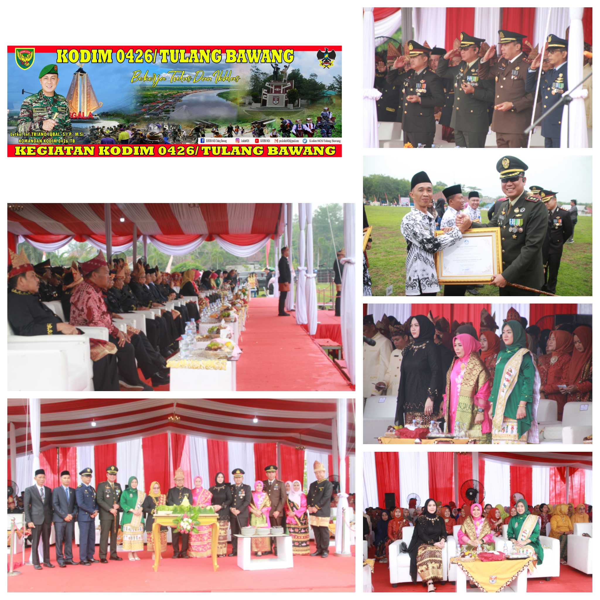 Dandim 0426 Tulang Bawang Letkol Triano Iqbal yang turut hadir dalam kegiatan Upacara Peringatan ini mengucapkan selamat hari ulang Tahun Kabupaten Mesuji yang Ke- 15 Tahun 2023.