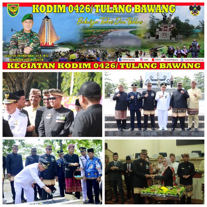 Dandim pastikan jajarannya akan terus bersinergi dalam membangun Tuba lebih baik lagi. Hal itu disampaikan Dandim usai ikuti upacara peringatan hari jadi Kabupaten Tulang Bawang di halaman Kantor Bupati Tuba.