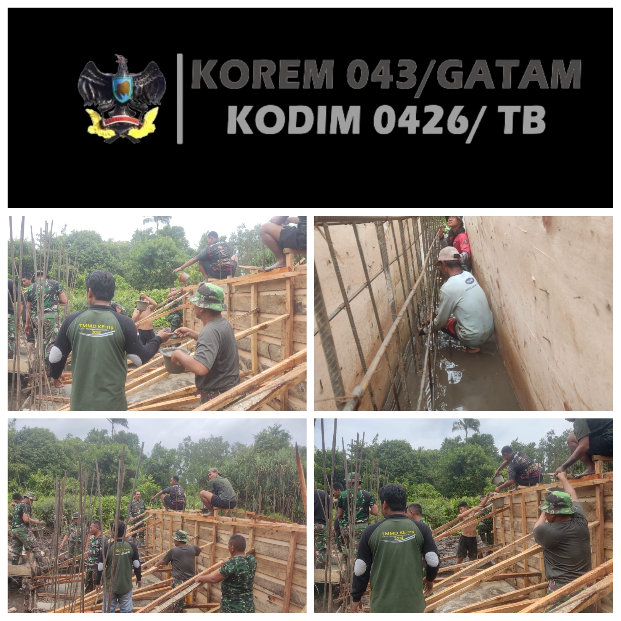 KODIM 0426/TB-Semangat kerja sama, gotong royong, dan kekompakan menjadi kunci utama dalam mempercepat proses pembangunan jembatan yang menjadi fokus utama dalam Kegiatan TMMD Ke-119 yang dipimpin oleh Kodim 0426/Tulang Bawang, Selasa 12 Maret 2024.