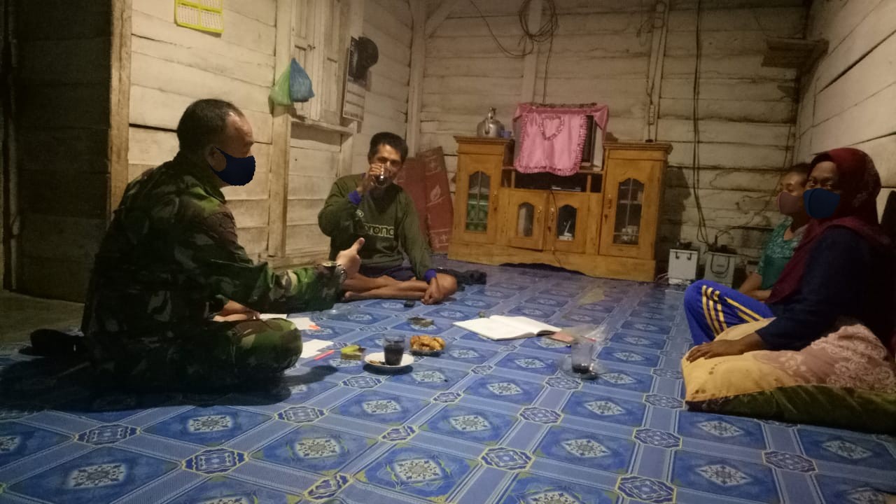KODIM 0426/TB- TULANG BAWANG- Menciptakan interaksi dan Komunikasi guna mewujudkan keharmonisan dan kekompakan bersama masyarakat di wilayah, Serda Ludin Madini  Babinsa Koramil 426-03/ Rawajitu wilayah binaan Desa Sungai Buaya, Kecamatan Rawajitu Utara melaksanakan Komsos bersama warga, Senin (01/02/2021).