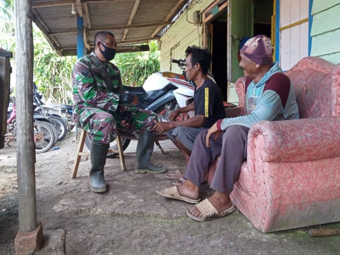 KODIM 0426/ TB- MESUJI- Serka Burhanudin, Babinsa Koramil 426-01/Mesuji aktif melaksanakan Komsos bersama warga di wilayah binaanya, di Desa Dwi Karya Mulya Kecamatan Mesuji Timur Kabupaten Mesuji, Jumat (19/11/2020)
