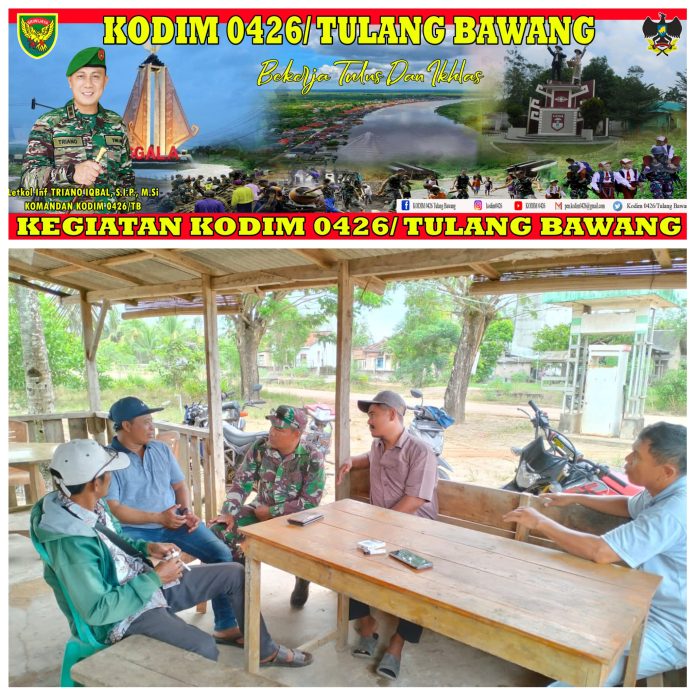 KODIM 0426/TB- Rawajitu Utara (Mesuji) — Sertu Budiman Babinsa Koramil 426-03 Rawajitu Kodim 0426 Tulang Bawang melaksanakan anjangsana rutin guna menciptakan Keamanan dan Ketertiban Didesa Sungai Sidang, Kecamatan Rawajitu Utara, Kabupaten Mesuji, Kamis 04 Mei 2023.