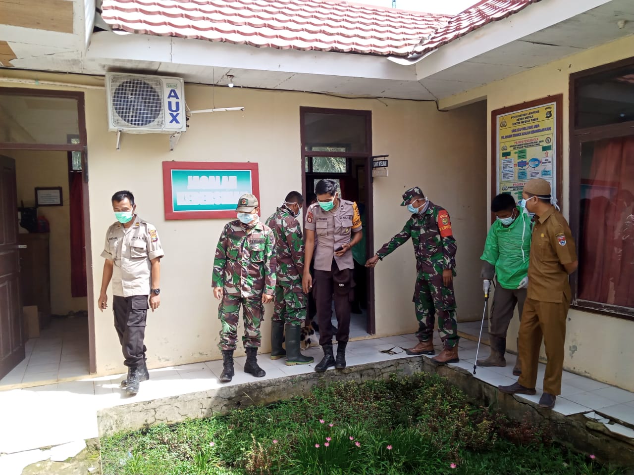 Koramil Mesuji, Posek Mesuji Timur dan Kecamatan Mesuji Timur Besinergi Semprot Desinfektan.