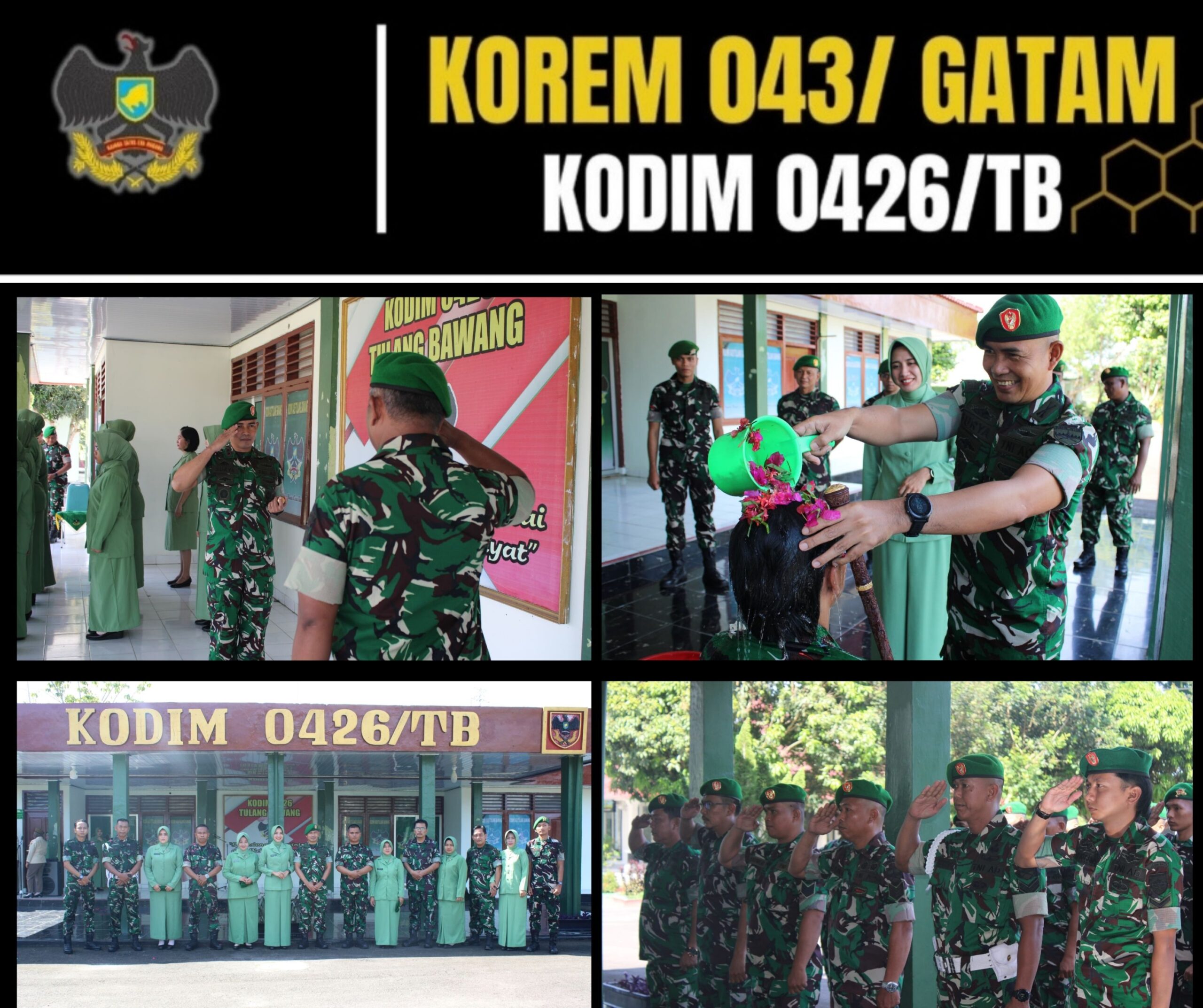 Upacara berlangsung tertib dan penuh rasa bangga, diikuti oleh para Danramil jajaran Kodim 0426/TB, perwira staf, anggota Bintara dan Tamtama, serta Ketua Persit Kartika Chandra Kirana Cabang XLIX Dim 0426/TB Ny. Rini Syurya Dharma beserta pengurus.