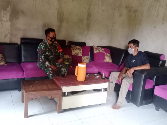 KODIM 0426/TB- MESUJI- Serka Imam Ropingi, Anggota Koramil 426-01 Mesuji, Kodim 0426 yang bertugas sebagai Babinsa Desa Sungai Badak, Kecamatan Mesuji, Kabupaten Mesuji, mengajak kepada masyarakat di Desanya untuk tidak merayakan malam tahun baru dengan membuat kerumunan, Kamis 31 Desember 2020.