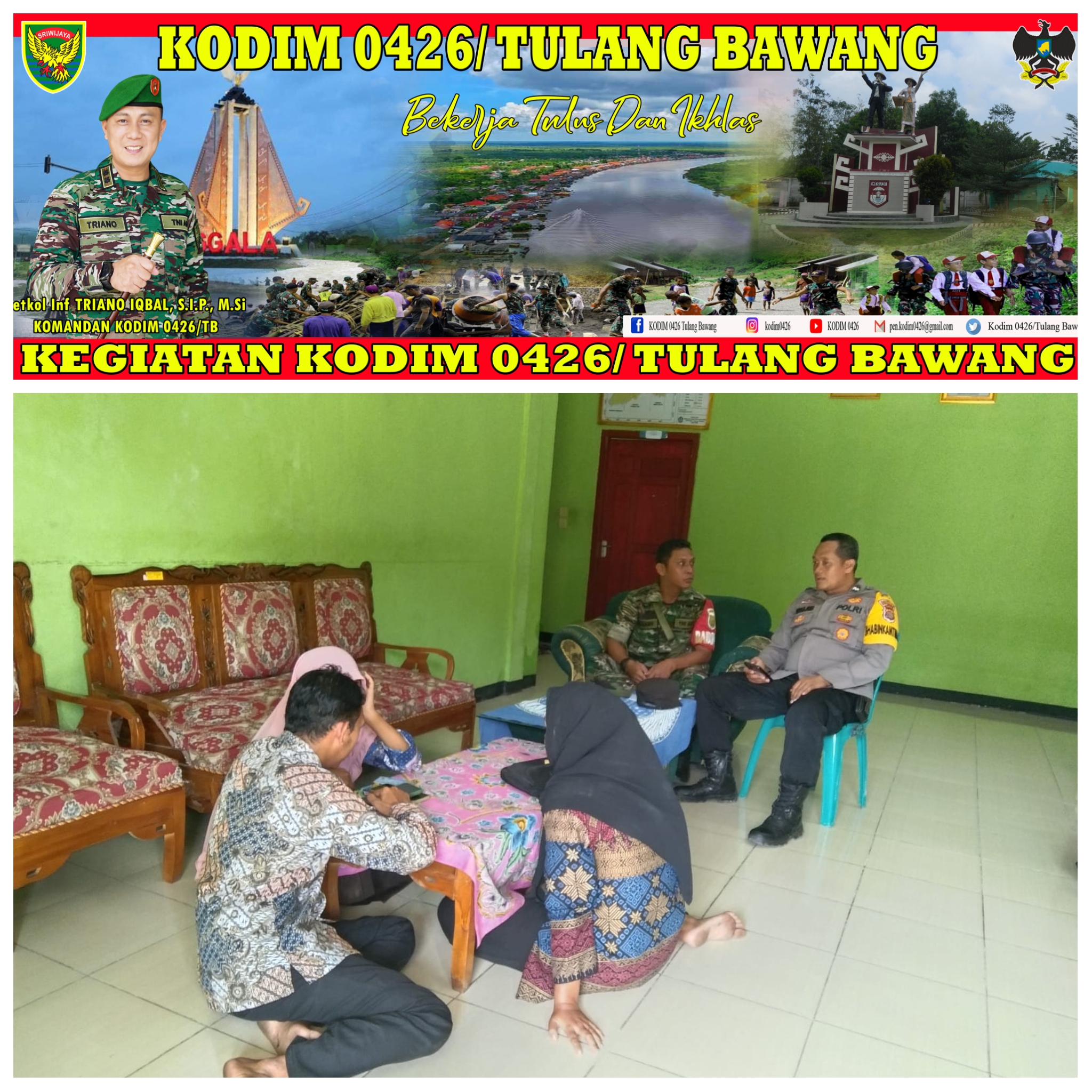 KODIM 0426/TB- Banjar Margo (Tulang Bawang) — Serda Junaidi Babinsa Koramil 426-04 Banjar Agung Kodim 0426 Tulang Bawang melaksanakan Komunikasi Sosial (Komsos) yang merupakan sarana sangat tepat sekali dalam merangkul warga Binaan dalam rangka memperkokoh Kemanunggalan TNI dan Rakyat.