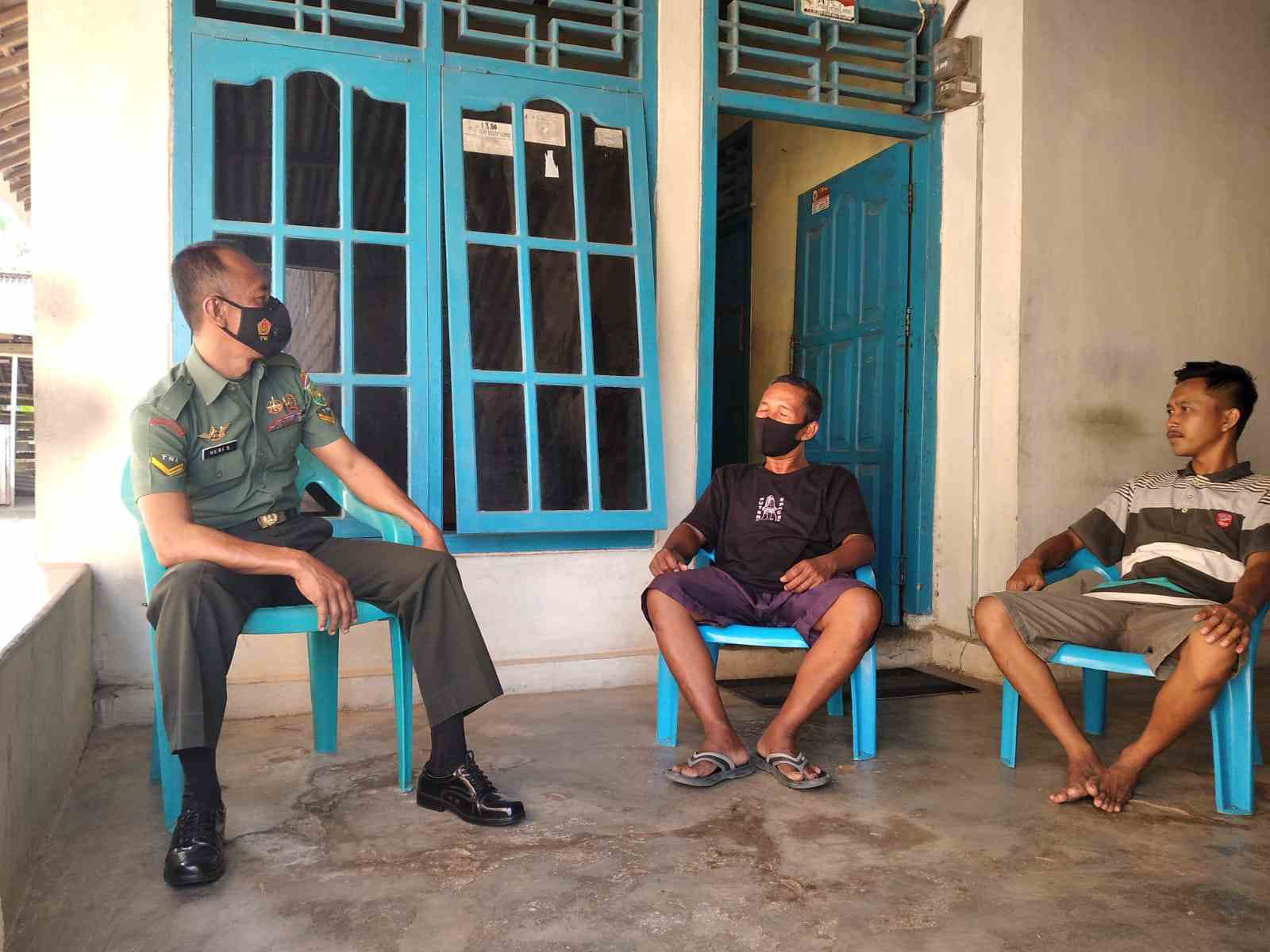 Personel Koramil 426-04 Banjar Agung, Kodim 0426 Tulang Bawang mengimbau masyarakat agar tetap patuh dan taat menerapkan protokol kesehatan atau prokes Covid-19.