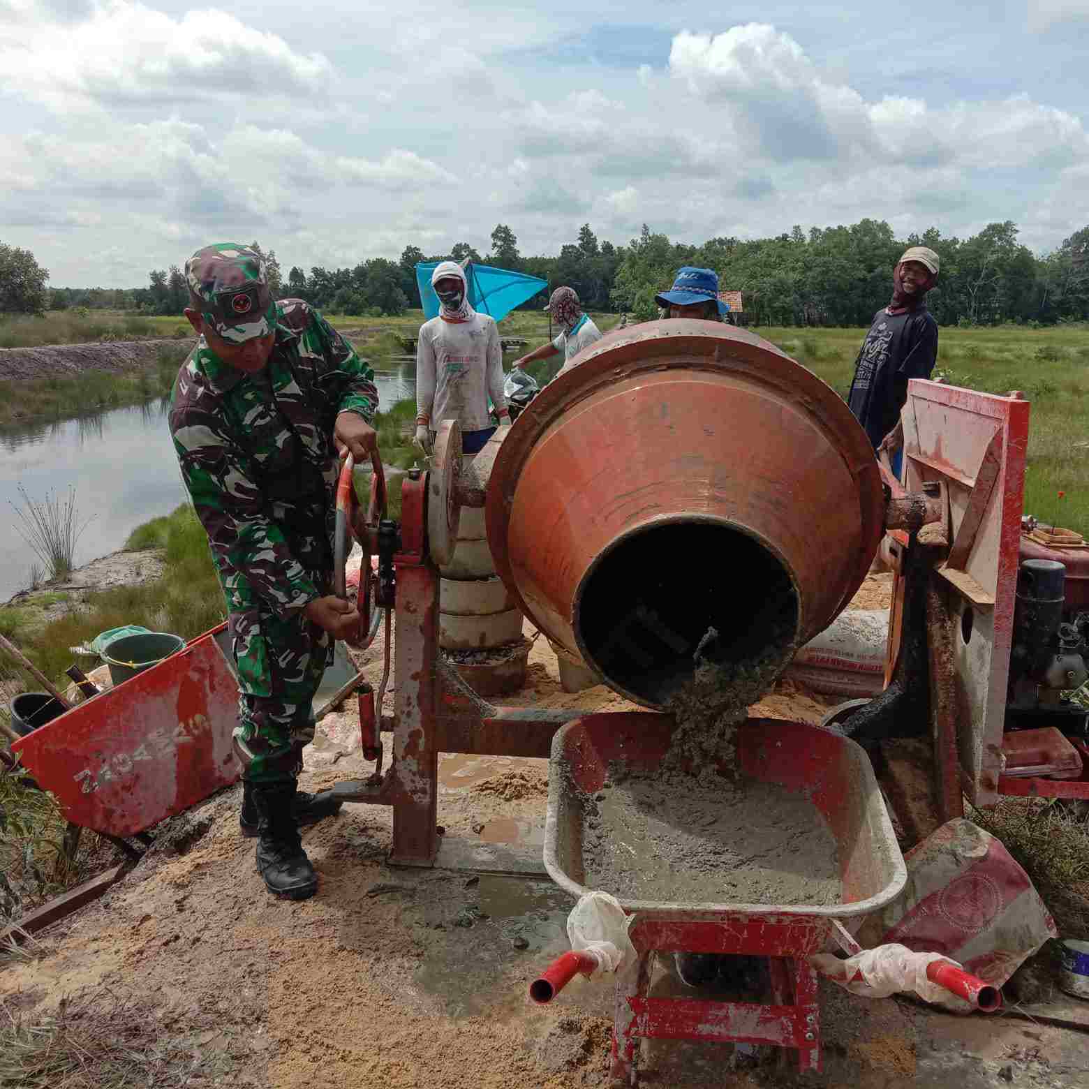 KODIM 0426/TB- Tulang Bawang – Untuk memudahkan aktivitas masyarakat, Babinsa Koramil 426-05 Penawar Aji, Kodim 0426 Tulang Bawang, Sertu Sadali bersama warga melaksanakan melaksanakan Gotong Royong pengecoran jalan yang menuju ke Perkebunan warga, di Kampung Suka Makmur, kecamatan Penawar Aji, Kabupaten Tulang Bawang, Kamis (24/11/2022).