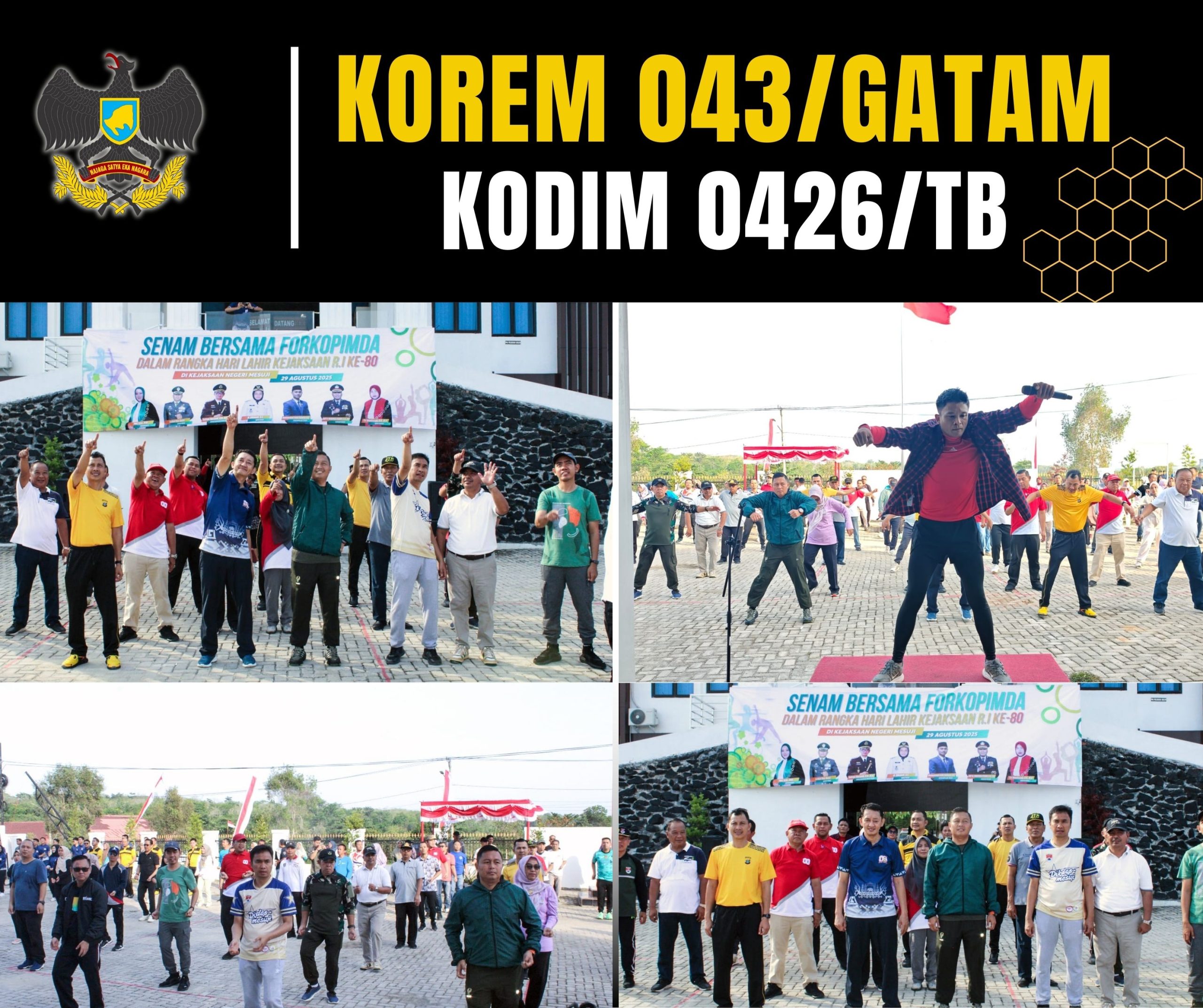 KODIM 0426/TB – – MESUJI — Dalam rangka memperingati Hari Lahir Kejaksaan Negeri Mesuji, Komandan Kodim 0426 Tulang Bawang, Letkol Kav Delvy Marico, S.E., M.I.P, turut menghadiri kegiatan senam bersama yang digelar Kabupaten Mesuji, pada Jumat, 29 Agustus 2025.