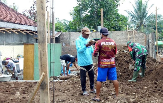 Meringankan Beban Warga Babinsa Serda Ludin Maldini Gotong Royong Membantu Buat Rumah Warga