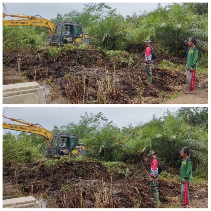 KODIM 0426/TB-Excavator menjadi pusat perhatian di sekitar jembatan Sungai Badak, Desa Sungai Badak, Kecamatan Mesuji, Kabupaten Mesuji, saat ini. Alat berat ini tengah melakukan proses normalisasi sungai, menjadi bagian penting dalam upaya memperkuat infrastruktur sekitar jembatan, Sabtu 24 Februari 2024.