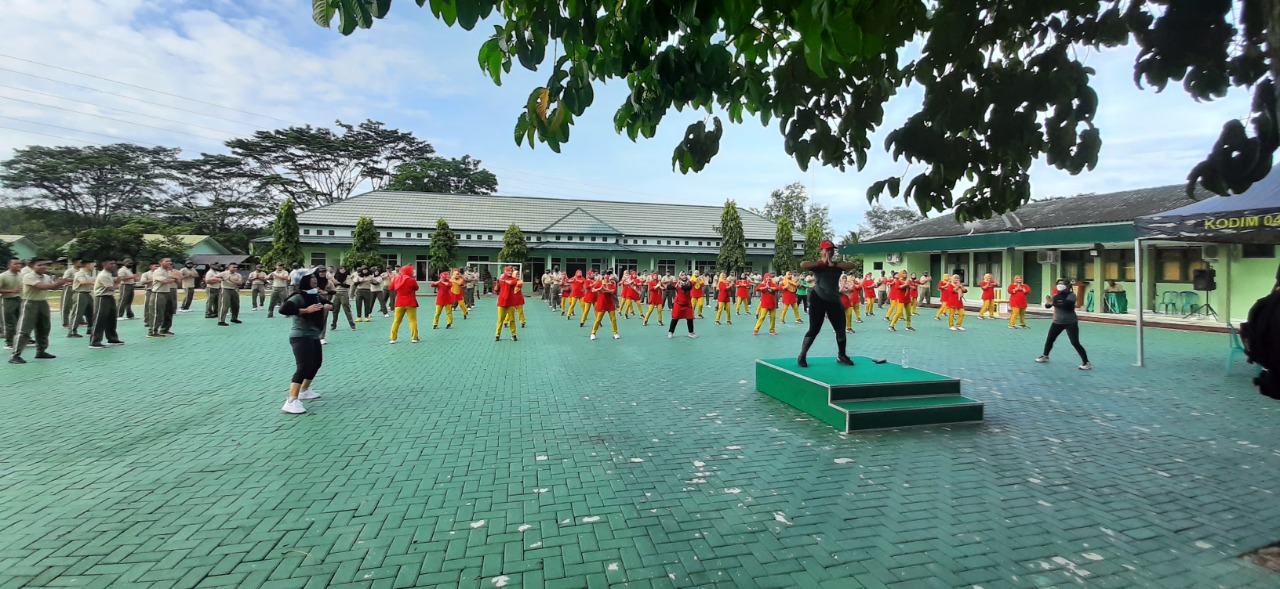 KODIM 0426/TB- TULANG BAWANG– Anggota Kodim 0426 baik Militer, ASN maupun Persit Kartika Chandra Kirana menbaur melaksanakan olahraga bersama dalam rangka menjaga kebugaran dan imunitas tubuh, Jum’at (15/01/2021)