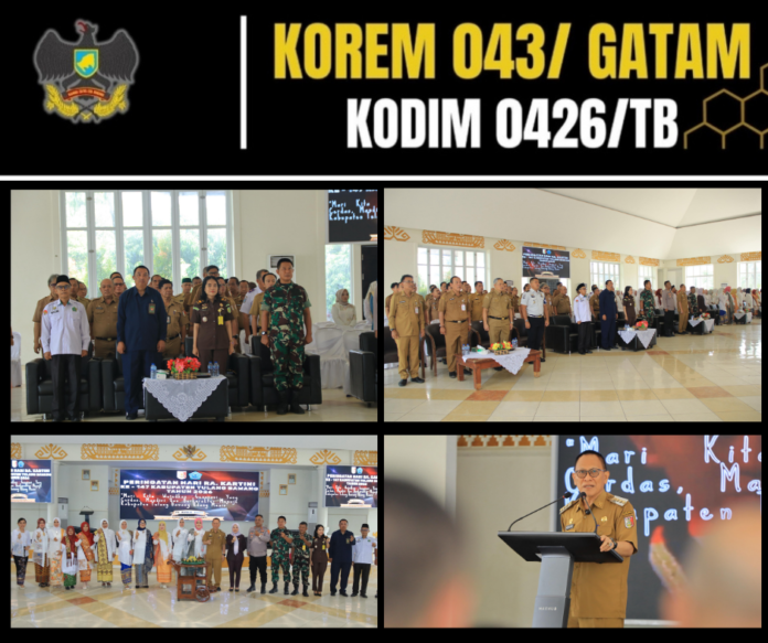 KODIM 0426/TB – – Menggala, 21 April 2026 — Dalam rangka memperingati Hari RA Kartini ke-147 Tahun 2026, Perwira Seksi Personel (Pasi Pers) Kodim 0426/Tulang Bawang, Lettu Inf Sudirman, menghadiri kegiatan peringatan yang diselenggarakan di Gedung Serba Guna (GSG), Jl. Cendana, Kelurahan Menggala Selatan, Kecamatan Menggala, Kabupaten Tulang Bawang, Selasa (21/04/2026).
