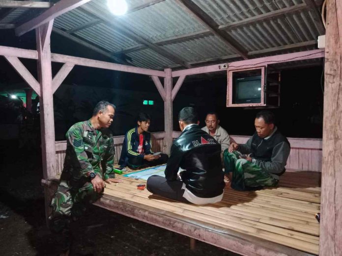 KODIM 0426/TB- Tulang Bawang – Babinsa Kampung Tri Tunggal Jaya, Kecamatan Banjar Agung, Kabupaten Tulang Bawang, Serma Sukardi, mengajak masyarakat melaksanakan kegiatan ronda malam dan menjaga kekompakan.