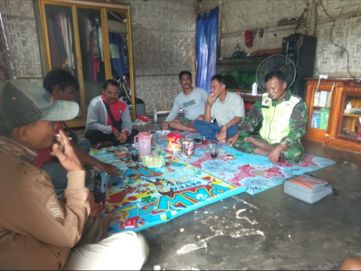 KODIM 0426/TB- Pelda Ilyas, Danposramil Kecamatan Way Serdang, melakukan komsos kepada perangkat Desa Kejadian, Kamis 25 November 2021.