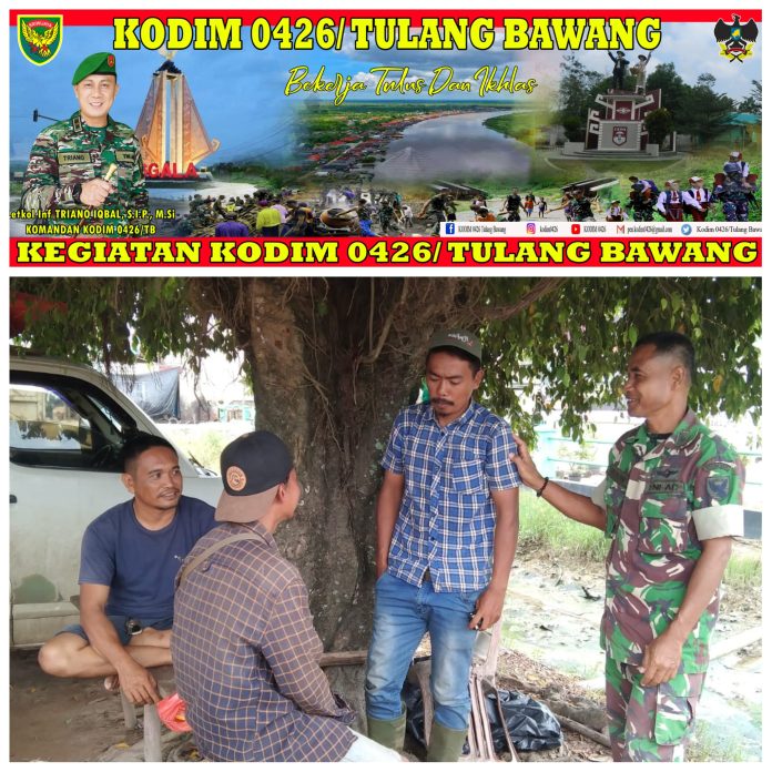 KODIM 0426/TB- Rawajitu Utara (Mesuji) — Babinsa Koramil 426-03 Rawajitu Kodim 0426 Tulang Bawang Membantu warga masyarakat dalam meningkatkan keamanan wilayah, melakukan Anjangsana di wilayah binaan.