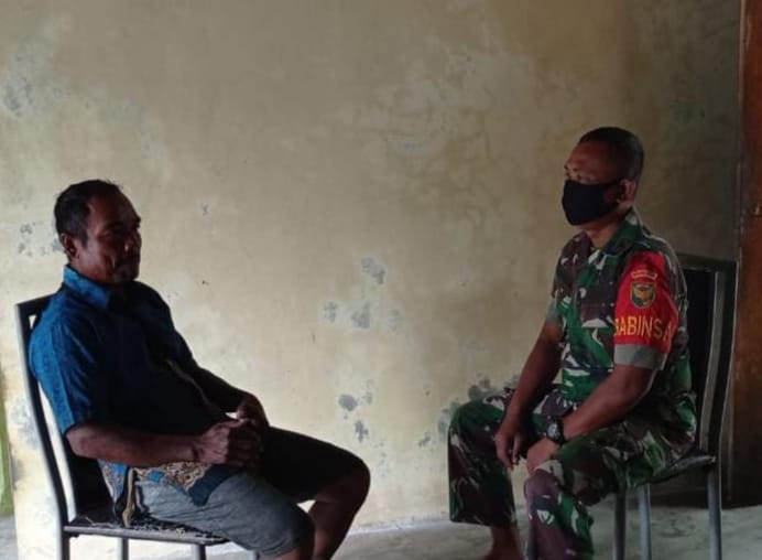 KODIM 0426/TB- Pelda Suyani, Babinsa Kampung Gedung Harapan, Kecamatan Penawar Aji, Kabupaten Tulang Bawang bergerak aktif ingatkan masyarakat pentingnya menjaga protokol kesehatan, Minggu 16 Januari 2022.