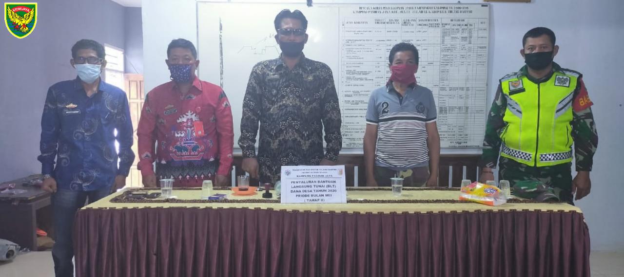 KODIM 0426/TB- DENTE TELADAS–Bintara Pembina Desa (Babinsa) Koramil 426-02 Menggala, Kodim 0426 Tulang Bawang, Serda Priyo Santoso dampingi Babinkamtibmas dan aparatur Kampung menyalurkan Bantuan Langsung Tunai (BLT) tahap- II di Balai Kampung Pasiran Jaya, Kecamatan Dente Teladas, Kamis (18-06-2020)