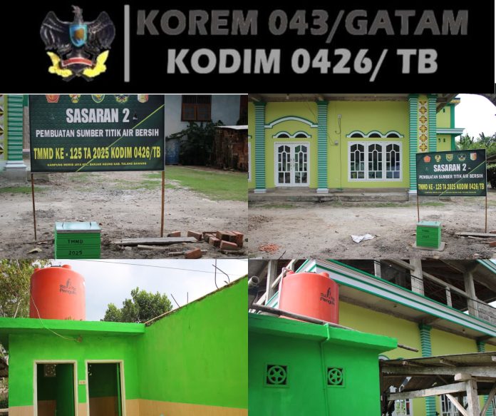KODIM 0426/TB – – Tulang Bawang, 13 Agustus 2025 — Program TNI Manunggal Membangun Desa (TMMD) ke-125 Kodim 0426/Tulang Bawang kembali menorehkan capaian penting. Pekerjaan pada sasaran 2, berupa pembangunan sumber titik air bersih di Kampung Moris Jaya, Kecamatan Banjar Agung, resmi rampung 100 persen pada Rabu (13/8/2025).