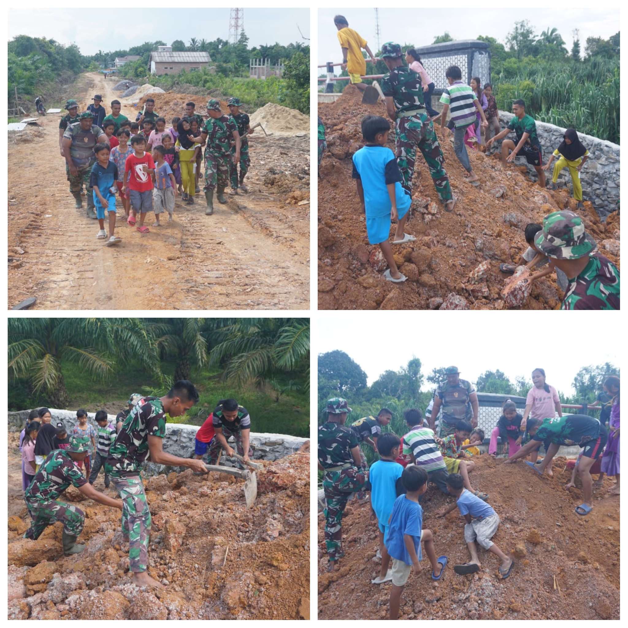 KODIM 0426/TB-Semua elemen masyarakat di Desa Sungai Badak, Kecamatan Mesuji, Kabupaten Mesuji, turut ikut andil dalam jalannya program TNI Manunggal Membangun Desa (TMMD) yang ke 119 di desa tersebut, Rabu 28 Februari 2024.