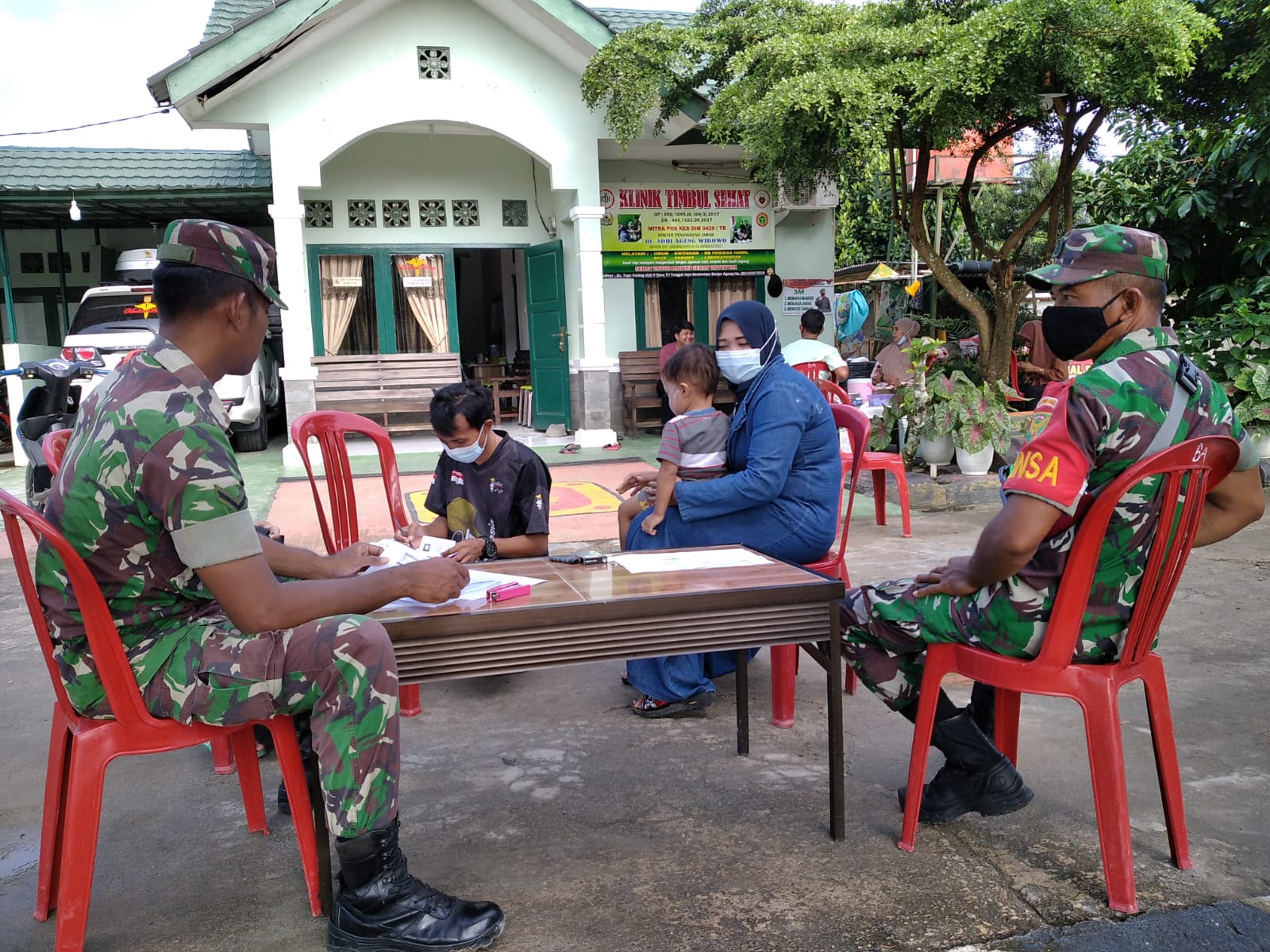 KODIM 0426/TB- Banjar Agung (Tulang Bawang) — Koramil 426-04 Banjar Agung, Kodim 0426 Tulang Bawang menggelar serbuan vaksinasi massal Covid-19 di Klinik Timbul Sehat, Kampung Tri Tunggal Jaya, Kecamatan Banjar Agung, Tulang Bawang, Rabu, 12 Januari 2022.