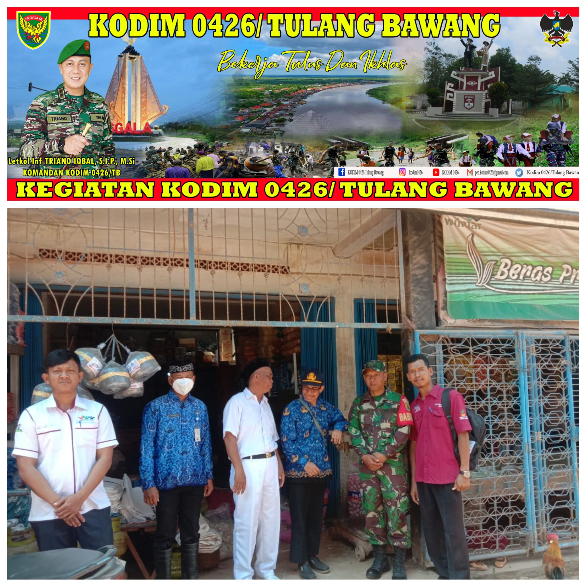 Serda Arif Saiful Babinsa Koramil 426-03 Rawajitu bersama Camat Kampung Medasari Kapolsek Rawajitu Selatan Babinkamtibmas dan Puskesmas Pidada melakukan pengecekan untuk mengantisipasi kelangkaan bahan pokok dan inflasi menyambut bulan suci ramadhan 1444 H.