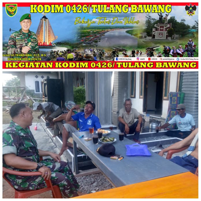 KODIM 0426/TB- Rawajitu Utara (Mesuji) – Babinsa Koramil 426-03 Rawajitu Kodim 0426 Tulang Bawang Serda Ludin, melaksanakan kegiatan Komsos di rumah pak Parmin di RT.04 RK.02 di Desa Sungai Buaya, Kecamatan Rawajitu Utara, Kabupaten Mesuji Sabtu, 28 Januari 2023.