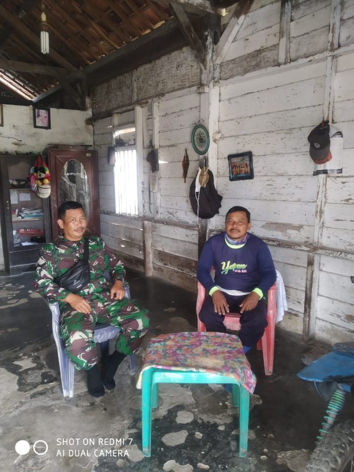 KODIM 0426/TB- Serda Novianto, Babinsa Kampung Bawang Tirto Mulyo, Kecamatan Banjar Baru, Kabupaten Tulang Bawang tak pernah berhenti mengingatkan masyarakat untuk terus menjaga diri dari Covid 19.