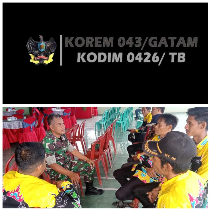 KODIM 0426/TB-(Simpang Pematang) –Babinsa Koramil 426-01/SP Melaksanakan Kegiatan Komsos bersama aparat desa membahas tentang penyiapan lahan pertanian terutama sawah yang akan mulai menanam padi, Sabtu (04/05/2024).