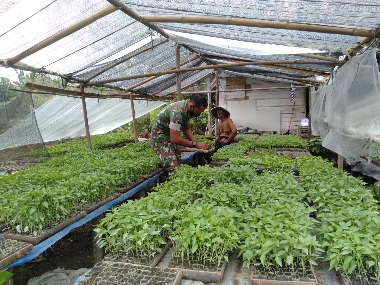KODIM 0426/TB- Serda Suranto, Babinsa Banjar Agung, Kecamatan Banjar Agung, Kabupaten Tulang Bawang berikan pendampingan kepada petani cabai, Minggu 13 Februari 2022.