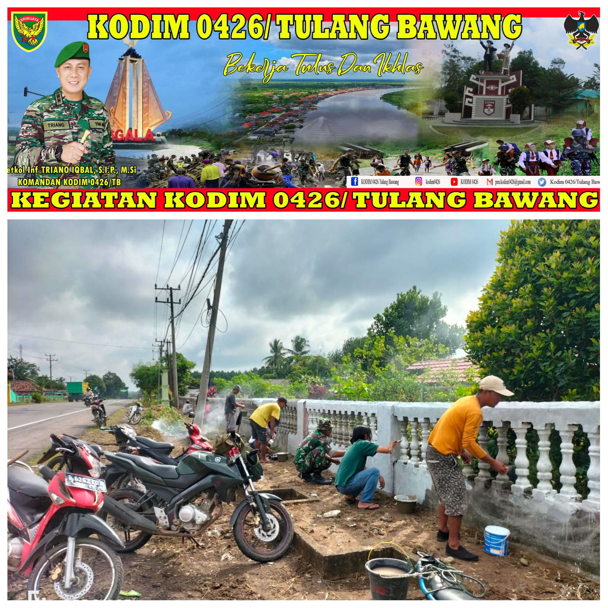 KODIM 0426/TB- Banjar Agung (Tulang Bawang) — Babinsa Koramil 426-04 Banjar Agung Kodim 0426 Tulang Bawang Serda Suranto melaksanakan Kegiatan Gotong Royong bersama masyarakat dalam rangka pembersihan makam menyambut penziarah memasuki bulan suci Ramadhan 1444 Hijiriah Di kampung Banjar Agung Kecamatan Banjar Agung Kabupaten Tulang Bawang Senin 13 Maret 2023.