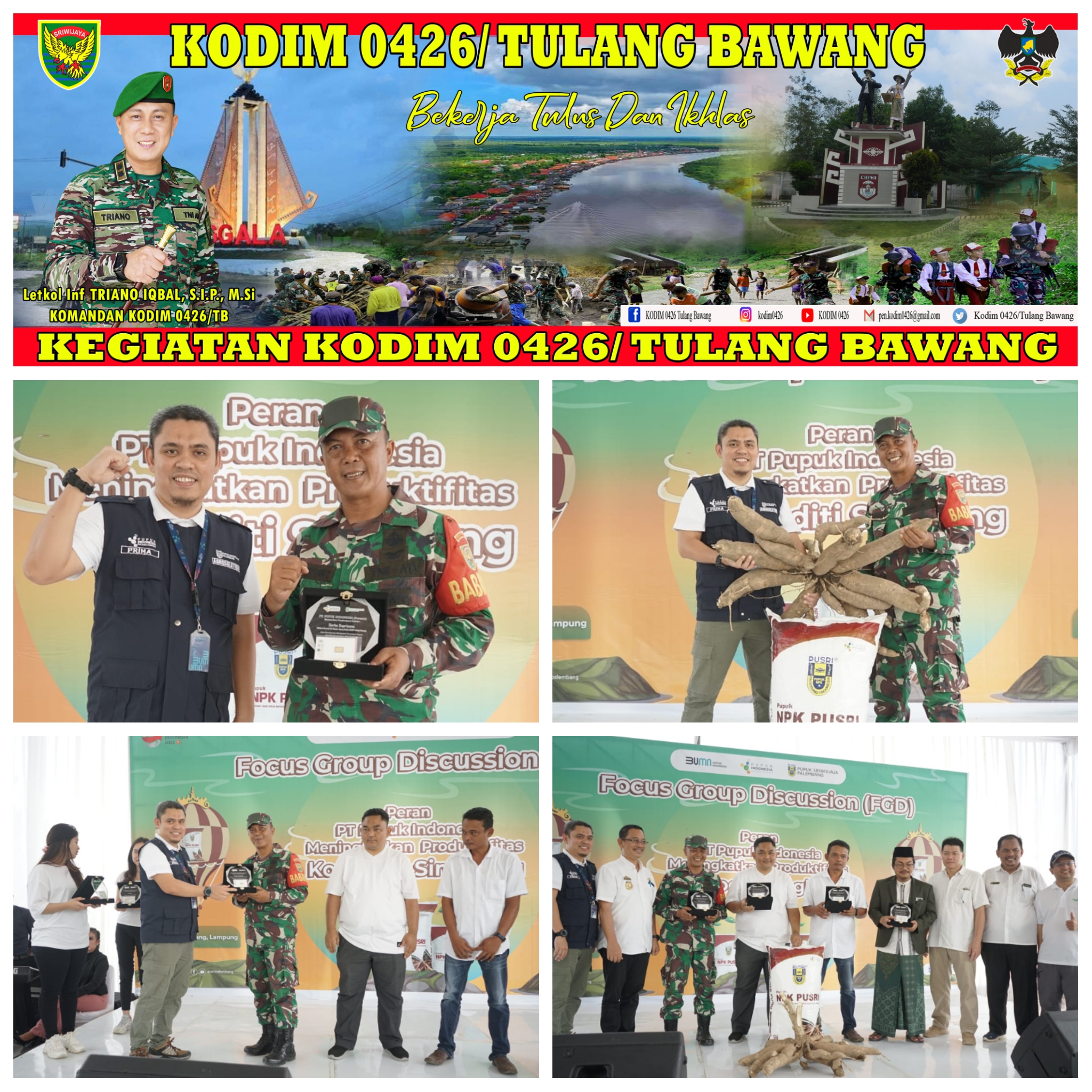 KODIM 0426/TB- Babinsa Kampung Tinggal Warga, Kecamatan Banjar Agung, Kabupaten Tulang Bawang (Tuba) Serka Supriyono terima penghargaan dari Pusri dengan kategori petani terbaik yang menggunakan pupuk non subsidi.