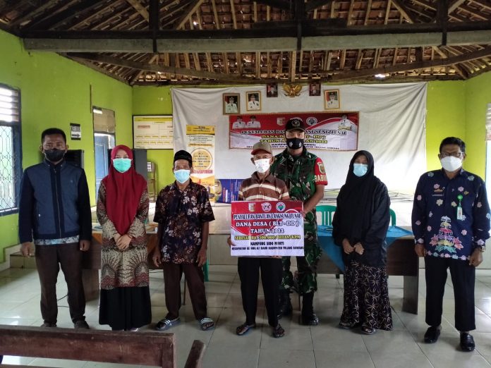 KODIM 0426/TB- Gedung Aji Baru (Tulang Bawang) – Babinsa Kampung Sido Mukti, Kecamatan Gedung Aji Baru, Kabupaten Tulang Bawang, Serka Susilo, melakukan pendampingan pembagian Bantuan Langsung Tunai Dana Desa (BLT-DD).