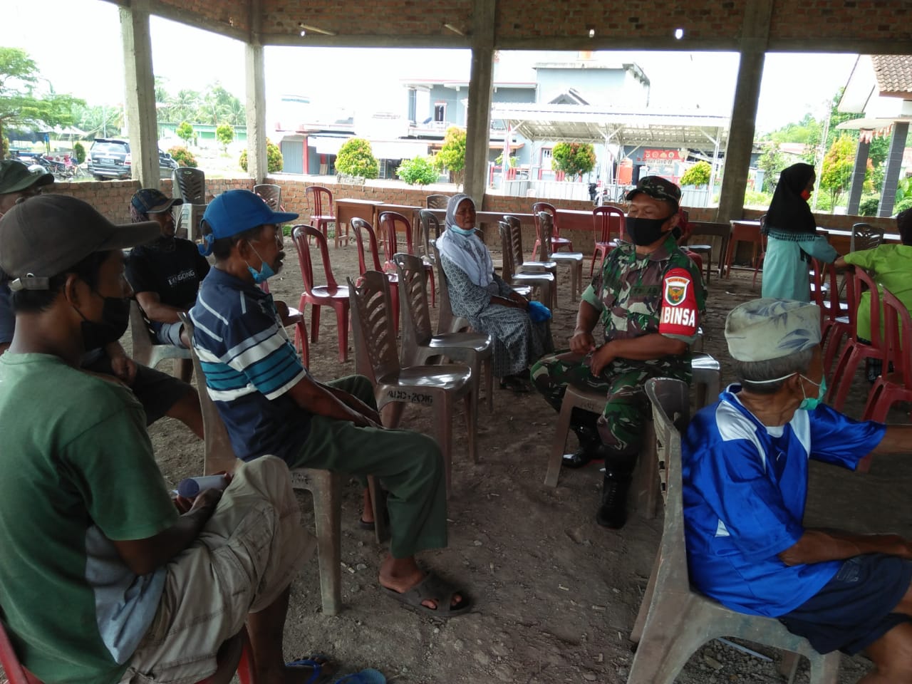 Anggota Koramil 426-03 Rawajitu, mengingatkan warga binaannya agar selalu menerapkan protokol kesehatan (Prokes) dengan gerakan 5 M yakni menggunakan masker, mencuci tangan pakai sabun, menghindari kerumunan, menjaga jarak, dan membatasi mobilitas.