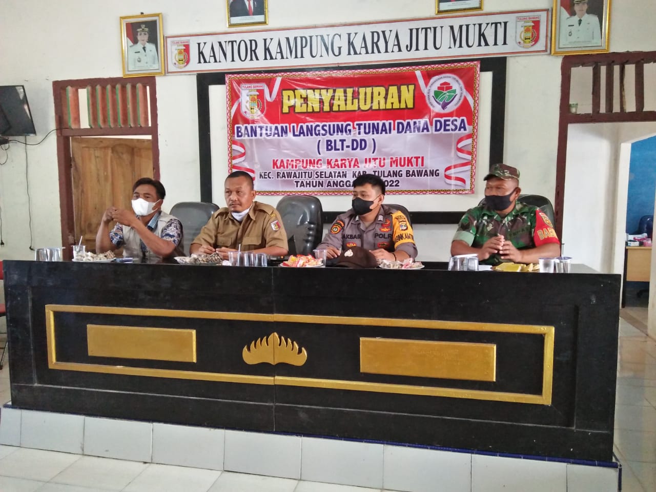 KODIM 0426/TB- Rawajitu Selatan (Tulang Bawang) — Babinsa Kampung Karya Jitu Mukti, Kecamatan Rawajitu Selatan, Kabupaten Tulang Bawang, Serma Slamet Triyadi melakukan pendampingan pembagian Bantuan Langsung Tunai Dana Desa (BLT-DD).