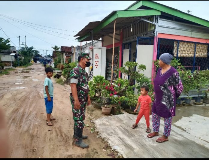 KODIM 0426/TB- Rawajitu Selatan (Tulang Bawang) — Babinsa Kampung Yudha Karya Jitu, Kecamatan Rawajitu Selatan, Kabupaten Tulang Bawang, Sertu Basarudin mengimbau masyarakat mematuhi protokol kesehatan Covid-19 saat beraktivitas di luar rumah.