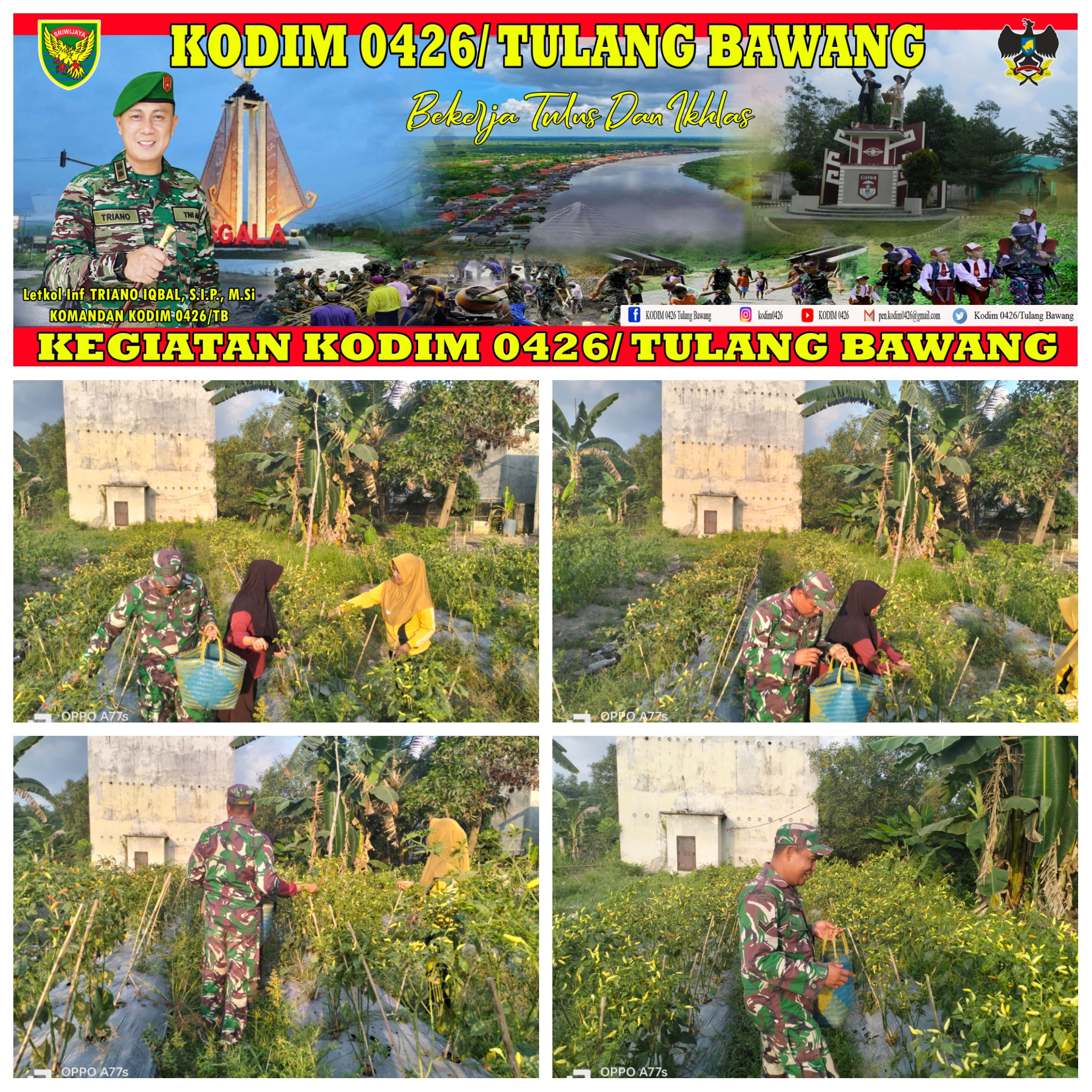 “Harga cabai sekarang Rp.35.000 per kg. Tentu ini dapat menjadi contoh baik bagi warga lainnya untuk dapat memanfaatkan lahan semaksimal mungkin. Pendampingan kami ini sebagai upaya realisasi ketahanan pangan Koramil 426-03,” lanjutnya.