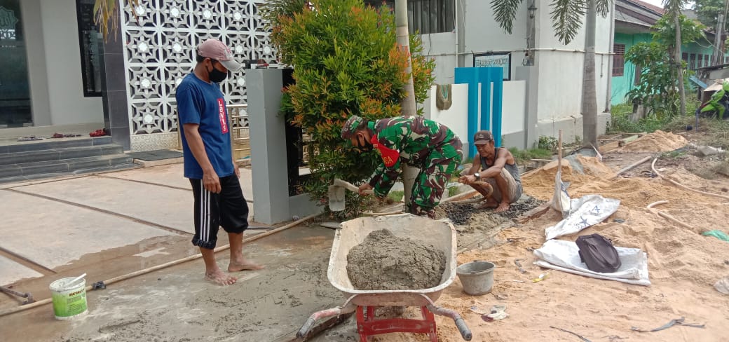 Kerja bakti yang dilakukannya bersama masyarakat itu yakni mengecor teras depan masjid yang ada di kampungnya.