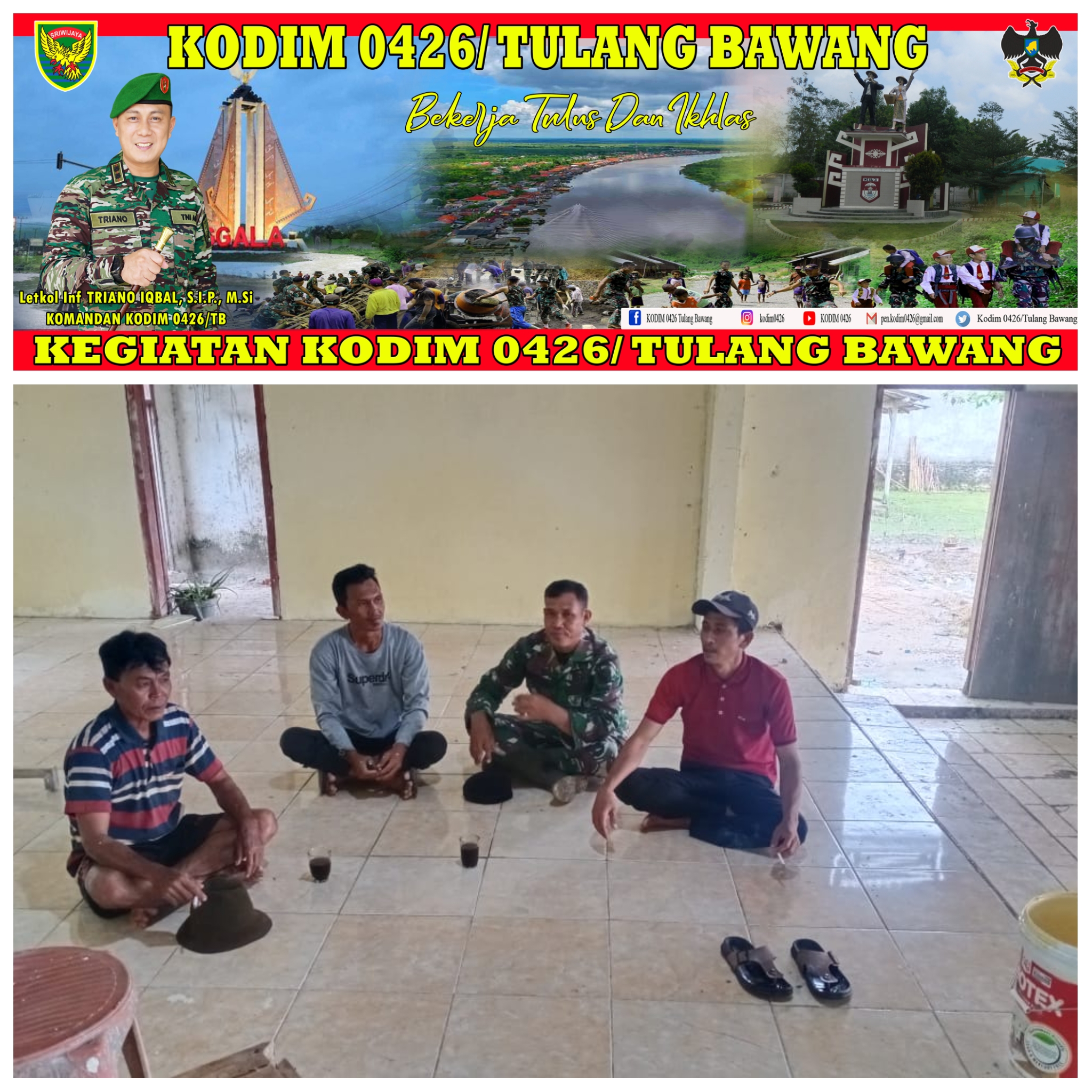 KODIM 0426/TB- Rawajitu Utara (Mesuji) — Babinsa Koramil 426-03 Rawajitu Kodim 0426 Tulang Bawang Sertu Rafinel melaksanakan kegiatan anjangsana di kediaman Bapak Gito Selaku Ketua RT 01 RW 01, Didesa Sidang Waipuji Kecamatan Rawajitu Utara Kabupaten Mesuji Selasa 14 Maret 2023.